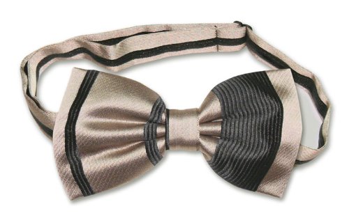 This listing is for a BRAND NEW Taupe / Light Brown and Black color Stripes pre-tied classic style with a clip woven BowTie.